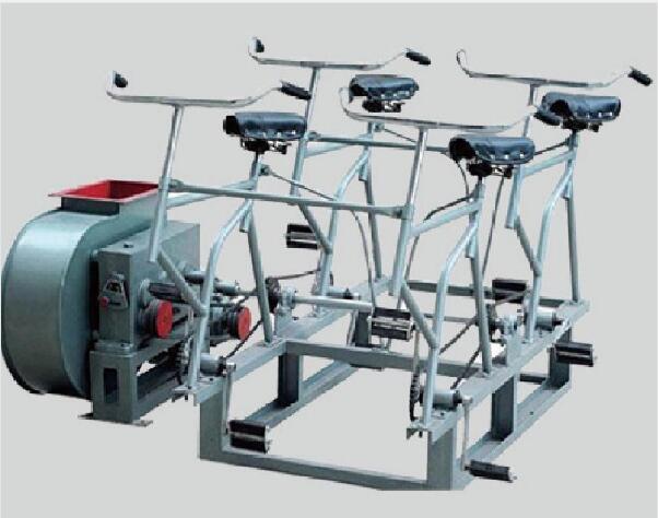 在四個(gè)人驅(qū)動(dòng),腳踏轉(zhuǎn)速為n=40轉(zhuǎn)/分時(shí)。風(fēng)量:Q≥1200立方米/小時(shí)。